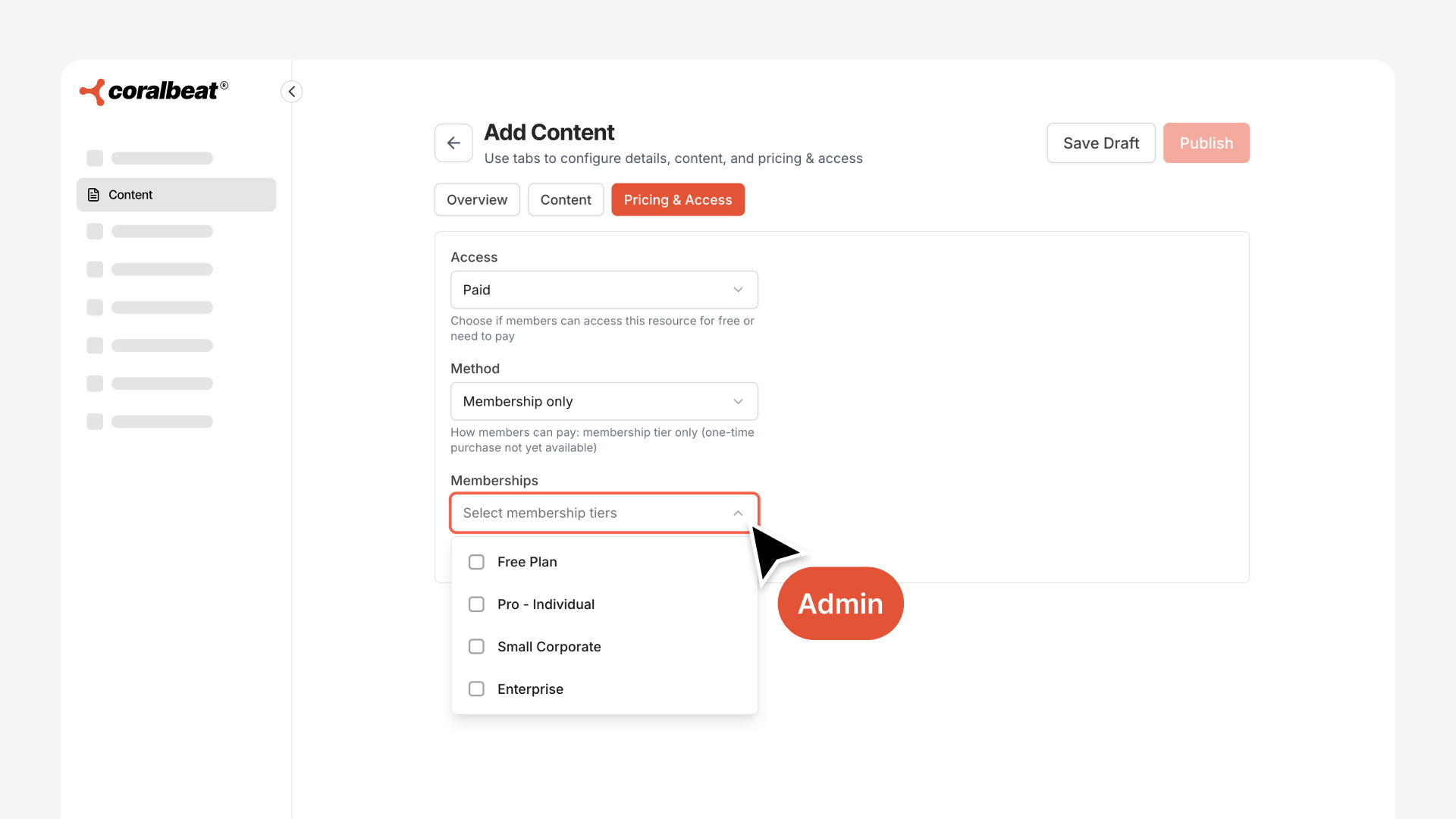 Every resource you upload gets an access level. You decide which membership tier unlocks each piece of content.